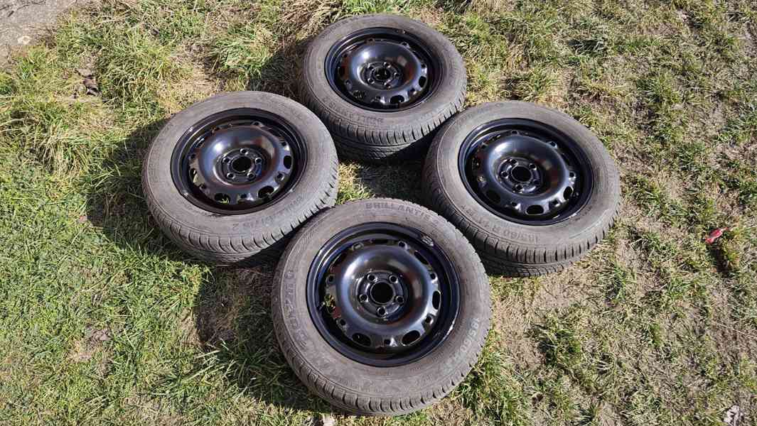 Škoda Fabia letní kola pneumatiky Barum Brillantis 2 185/60 R14 (zánovní vzorek 7-8mm ještě na několik sezon) plechové disky 6Jx14 5x100 ET43 v perfektním stavu bez koroze, kola jsou vyvážená připravená na nasazení na auto, vyzvednutí Kralupy, sada letních kol, pneumatik disků na Škodu Fabií, 185 60 14, 185/60/14, 14".