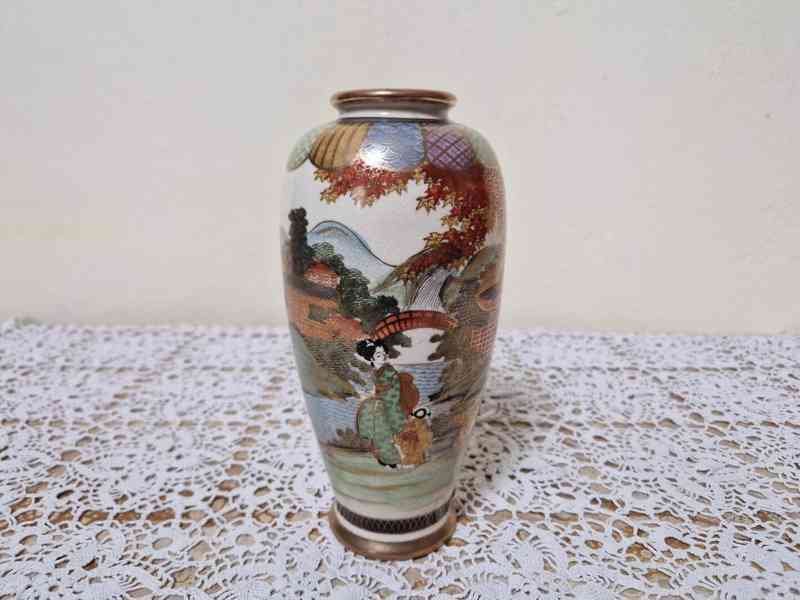 Krásná porcelánová Váza s Gejšami, bohaté zdobení a zlacení, kvalitní zpracování - Satsuma Japonsko, 19/20 stol.
