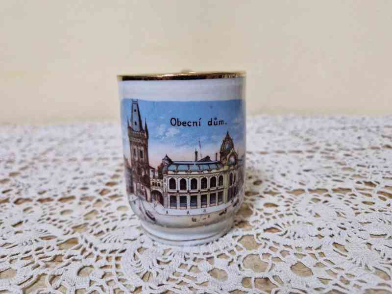 Sbírkový starý zlacený porcelánový Hrnek, Top Stav, RU - Pozdrav z Prahy. Obecní Dům.