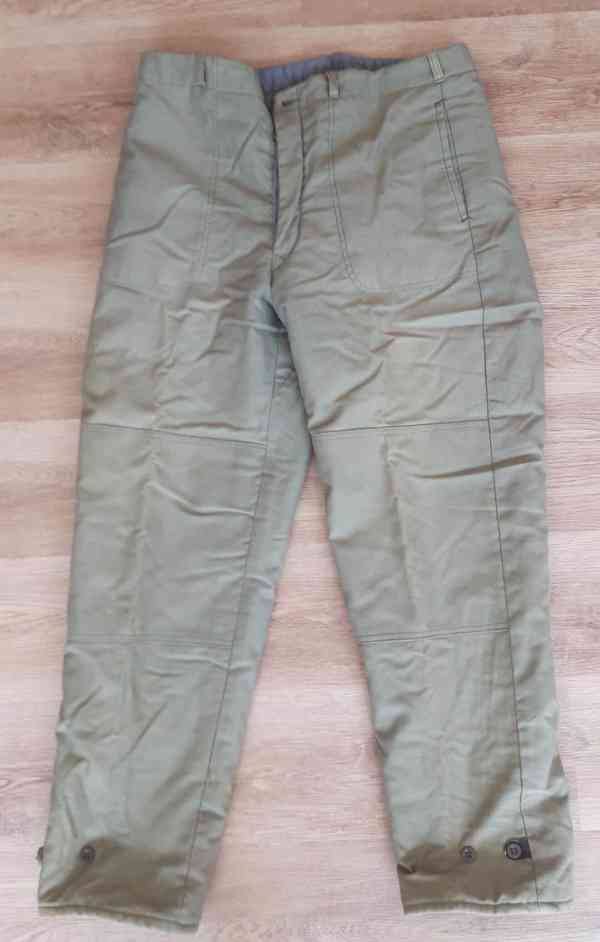 Prodám 2 ks zimní pracovní kalhoty zatepleté - tzv. vaťáky, vel. 47-50, jedny kalhoty délka 100cm, pas 90 cm, pouze několikrát nošené, zachovalé za 120,-Kč a dále zimní pracovní kalhoty, délka 110cm, pas 90-94 cm, nové, za 230,-Kč. Oboje prodám celkem za 270,-Kč.