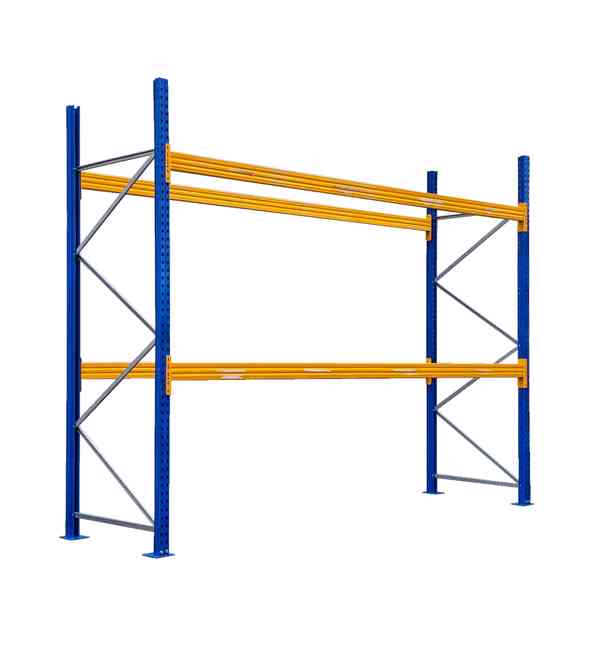 Kvalitní paletové regály s šířkou pole 3,6m s kapacitou uložení čtyř EUR palet vedle sebe s oblíbenou nosností 500 kg na paletu.