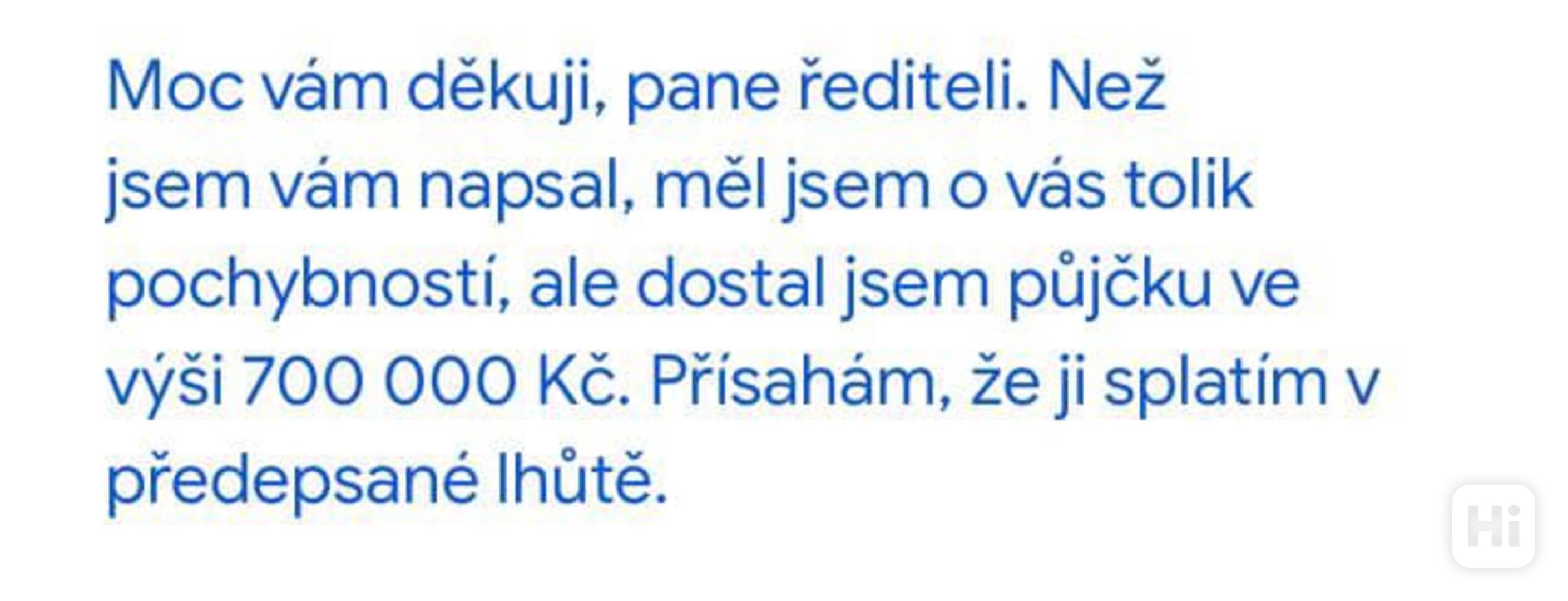 Dobrý den, děkujeme, že jste nás kontaktovali. Nabízíme půjčky od 20 000 Kč do 500 000 Kč s roční úrokovou sazbou 2 %. Doba splácení se pohybuje od 1 do 35 let v závislosti na výši úvěru. Pokud máte zájem o naši nabídku úvěrů, odpovězte prosím na následující dvě otázky: